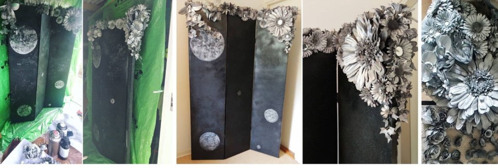 Det började med att jag fick en idé om att spraymåla blommor att ha som prydnad. Ur det föddes en ny idé om en skärmvägg. Snart målade jag på canvas och sprayfärg blev min form.