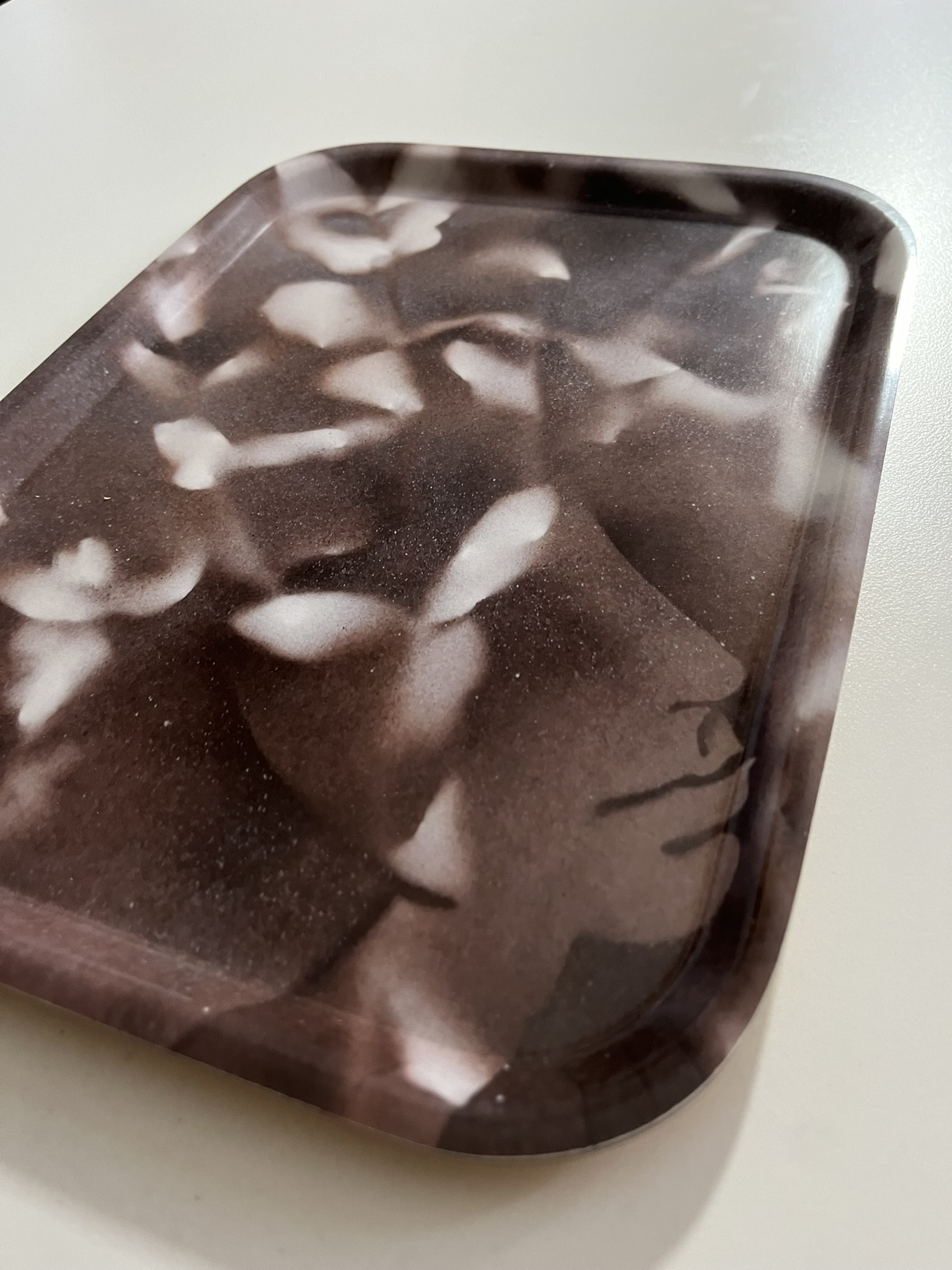 Material: Handmade from birch veneer, which is beautifully visible on the back. Treated surface to make the tray durable and heat resistant. Dishwasher safe, but hand wash is recommended to make it last as long as possible.